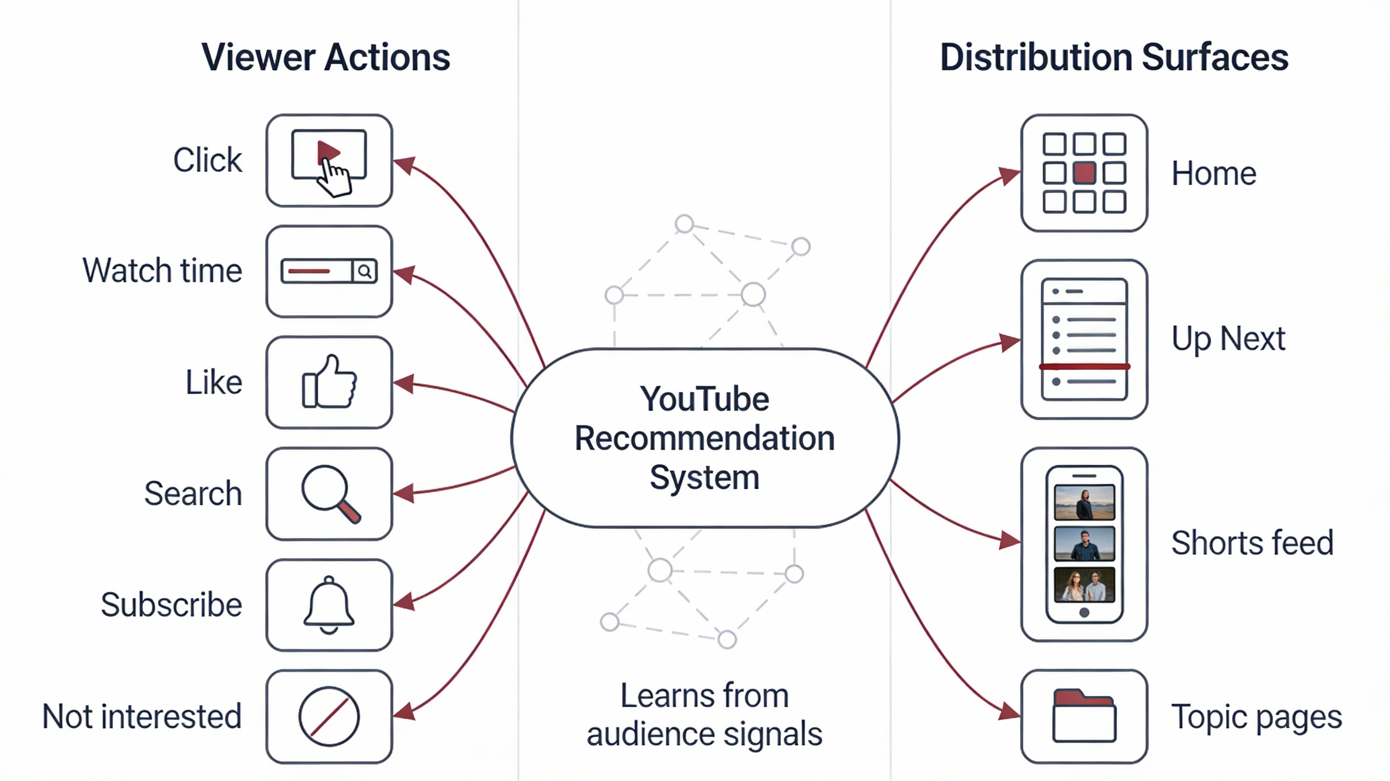 Watch history | “This person repeatedly chooses content like this.” | Build series and recurring formats so each video fits prior habits. |