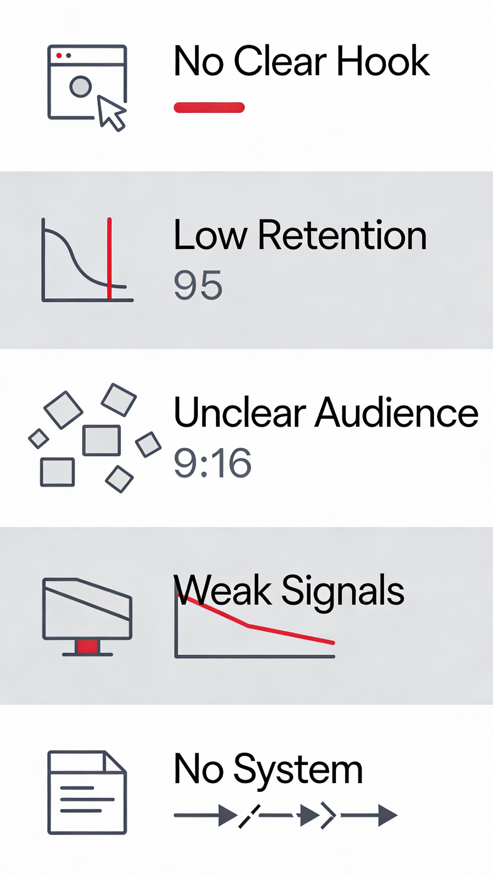 Most YouTubers fail because their content starts strong but decays fast. Long intros, slow pacing, or delayed value cause viewers to drop off before YouTube can trust the video.